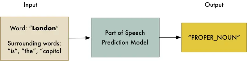 要知道词的属性,我们可以将每个词(包括一些上下文的词)提供给预先训练的词性分类模型: