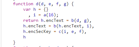 可以看到params参数是经过两次 b 函数生成的,也就是用 aes 加密两次,encSecKey参数是通过 c 函数生成的,也就是通过 rsa 加密方式生成的。
