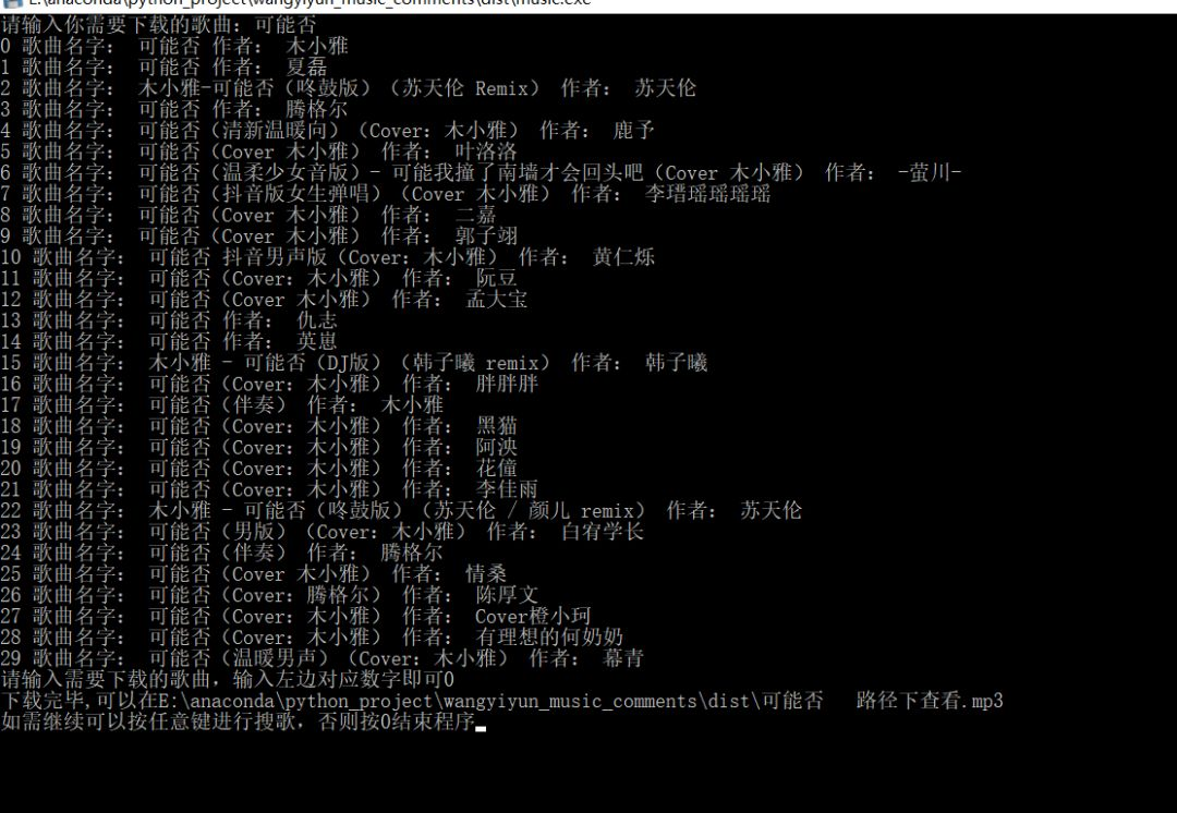 我还将程序打包了,遇到了喜欢的歌曲都可以下载下来,虽然可以直接用网易云下载,不用那么麻烦,但是我们学编程的是要干什么的?装逼啊,能用代码绝不用其他的东西。