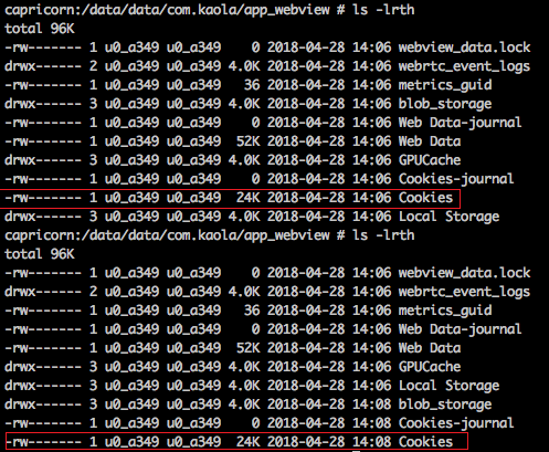 - Cookie是通过CookieManager管理的,CookieManager是个单例,可能只会读取一次Cookies.db,然后缓存在内存中;