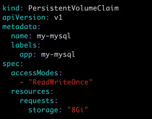 PersistentVolumeClaim,为 MySQL 申请持久化存储空间。