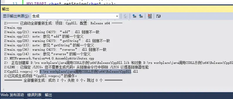 好了,c++和c#全部工作完成,右键生成。