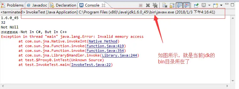2、怎么确定c#的dll是不是成功复制到jdk的bin目录呢?换言之怎么确定自己的bin目录在哪里呢?可以在eclipse中运行的时候通过控制台看到。