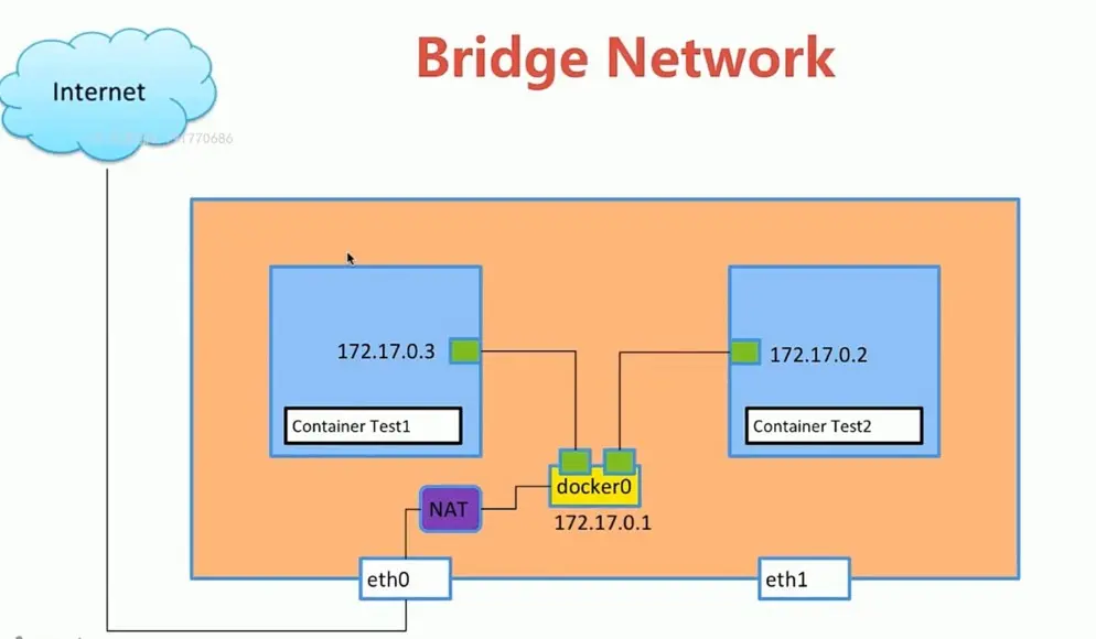 - bridge模式,使用--net=bridge指定,默认设置。
