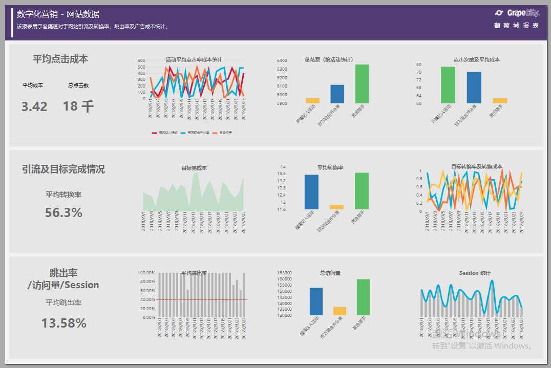 网络市场营销报表特点多图表布局