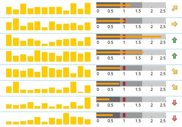 选择市场营销报表工具时,根据数据标识特点,需要提供多种数据预警方式,如使用数据高亮突出特殊数据,数据条显示 KPI 信息,迷你图标识工作表数的趋势,图标集进行图标标识等。