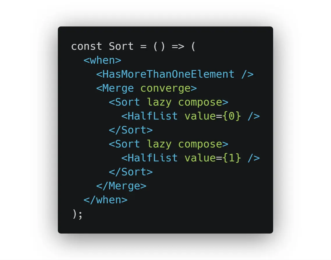 现在,你可以用ramda做的所有事情都可以用JSX来做了。你可以使用它来做任何事情,包括归并排序: