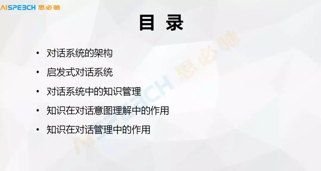 再我们来看一下,在对话系统里边这些知识它在对话的理解以及对话管理中是怎么来发生作用的,后面我会结合现有的技术,现有的大家常见的做对话里边的相关技术,然后和启发式对话一起来介绍对话系统中的知识管理。