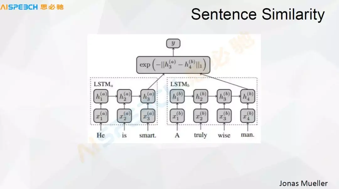 这是一个基本的模型,现在做问句,我们刚才提到现在大量的实际使用中做问句的相似度匹配,可能一种方法就是做句子相似度的计算,这张图是一个做句子相似度计算的基础模型,这里面这些都是现有的方法。