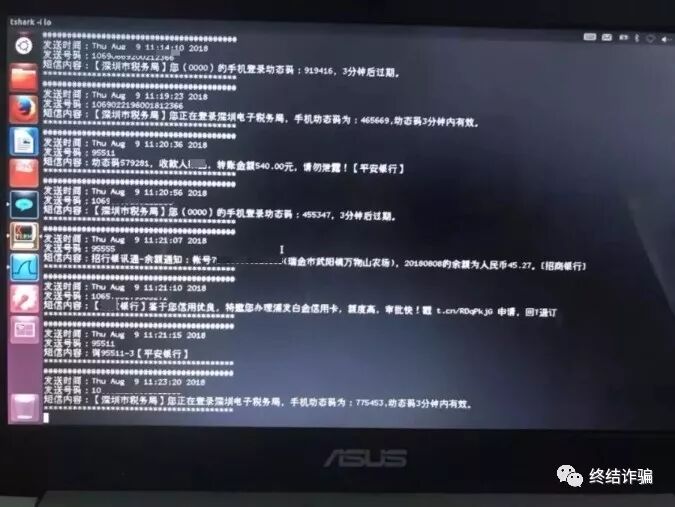 前期准备工作做完后,神奇的一幕发生了,小A的电脑上很快就出现了几十条短信并且在不断增加,而且都是实时的。也就是说,这台短信嗅探设备启动后,能嗅探到附近(大约一个基站范围内) 所有2G信号下手机收到的短信。