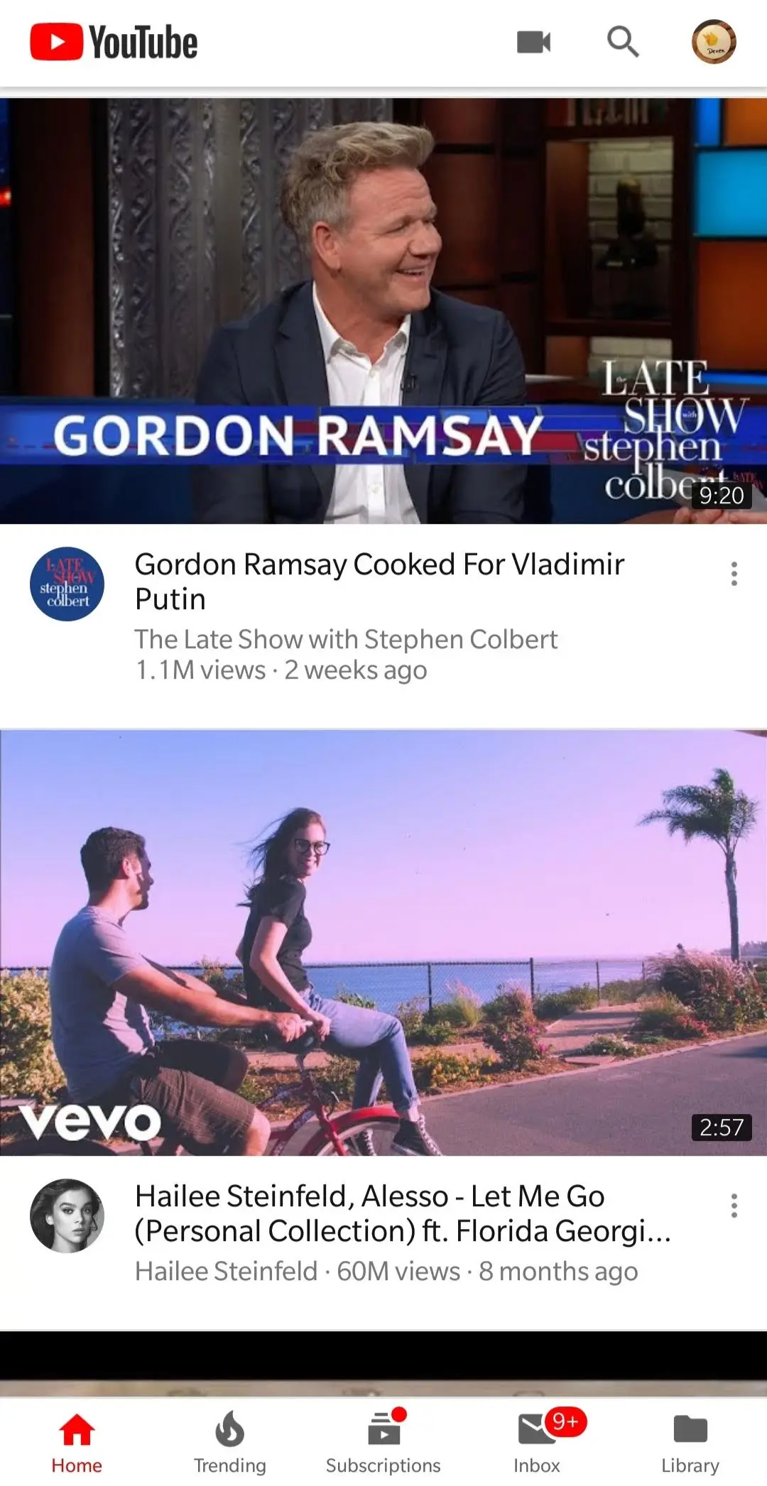 用户订阅视频是由推荐视频组成的项目列表。我们来看看列表项: