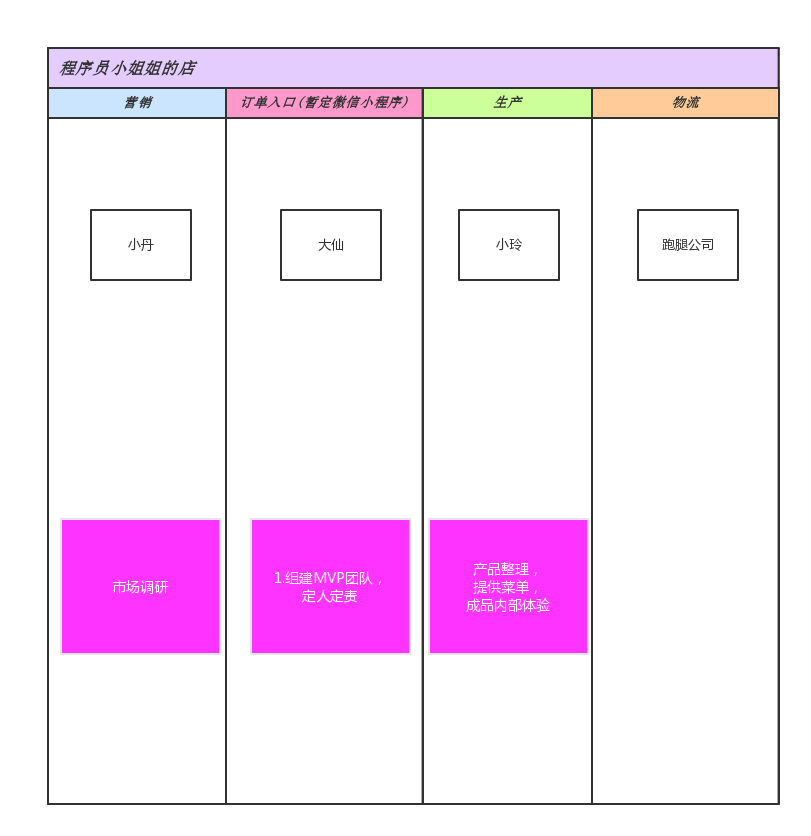 因为我们程序员经常加班,所以一日三餐以外卖为伍,吃得不对,运动不够,种种原因造就了油腻的现状。 作为骄傲的猿类,我们发现了问题,就想用程序员的方式,去优雅的解决他。 所以,我们把目标定为:提供一种健康的饮食结构,来改善我们程序员的健康状况。 我们没有任何做餐饮的经验,所以只能用程序员的思维去干这件事, 我们打算用产品思维去指导我们。先做一个MVP版本出来,后期一步步迭代。