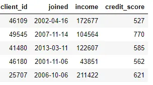 clients: 客户在信用社的的基本信息。每个客户在这个 dataframe 中仅占一行