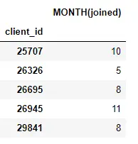 以上函数返回结果是每个客户的新特征 dataframe (因为我们把客户定义为目标实体)。例如,我们有每个客户加入的月份,这个月份是一个转换特性基元: