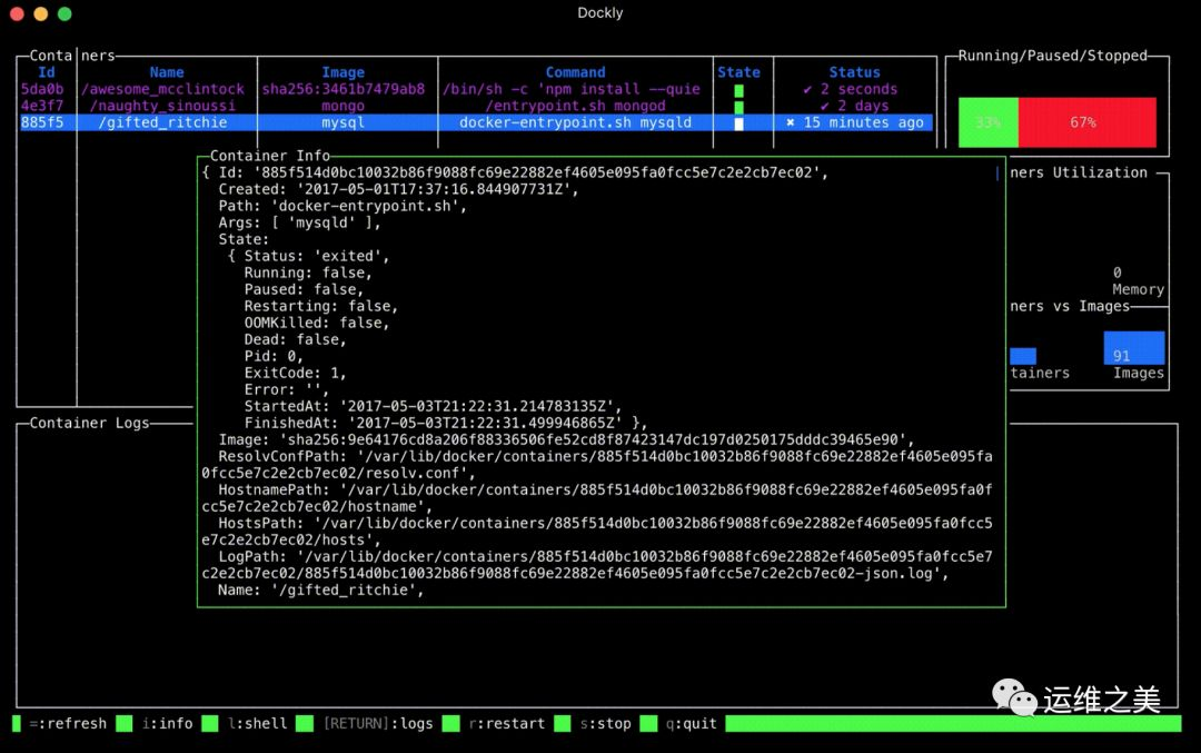Dockly 是一个使用 Node.js 编写的开源软件,功能上和 Dry 类似。Dockly 可以很方便的通过 NPM 进行安装,并支持在 Linux、macOS 和 Windows 上运行。