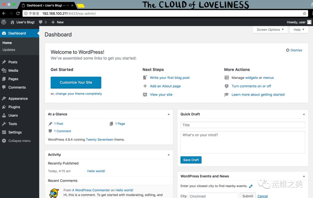 这里以一个典型的三层应用 Wordpress 为例,包括 MySQL、PHP 和 Apache。