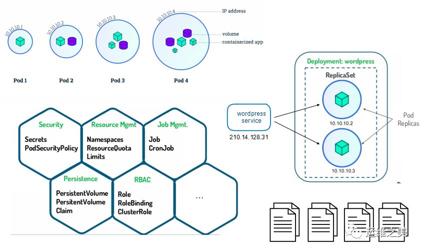 以一个典型的三层应用 Wordpress 为例,该应用程序就涉及到多个 Kubernetes API 对象,而要描述这些 Kubernetes API 对象就可能要同时维护多个 YAML 文件。