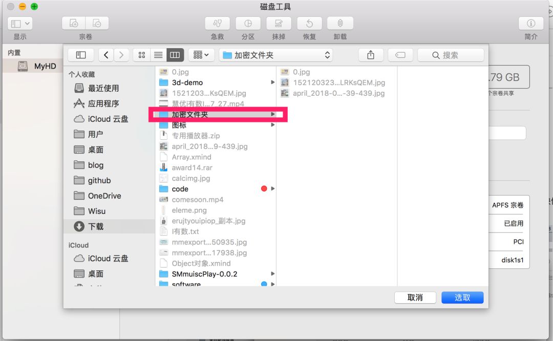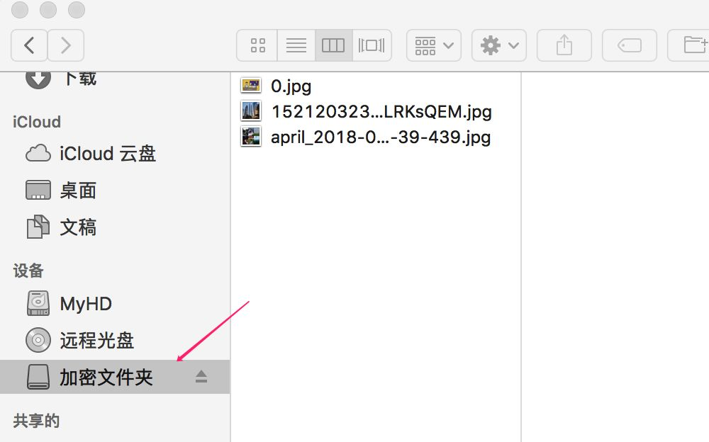 创建加密文件夹实际上是创建一个带密码的dmg文件。双击该文件会要求输入密码。密码输入正确后会以文件夹形式打开并显示其中所包含的文件。