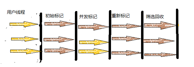 其中初始标记、重新标记这两个步骤仍然需要暂停其他线程。但另外两个步骤可以和其他线程并发执行。初始标记仅仅只是标记一下GCRoots能直接关联到的对象,速度很快,并发标记阶段就是进行GC Roots Tracing的过程 (说白了就是把整个图都遍历了,找出没有的对象),