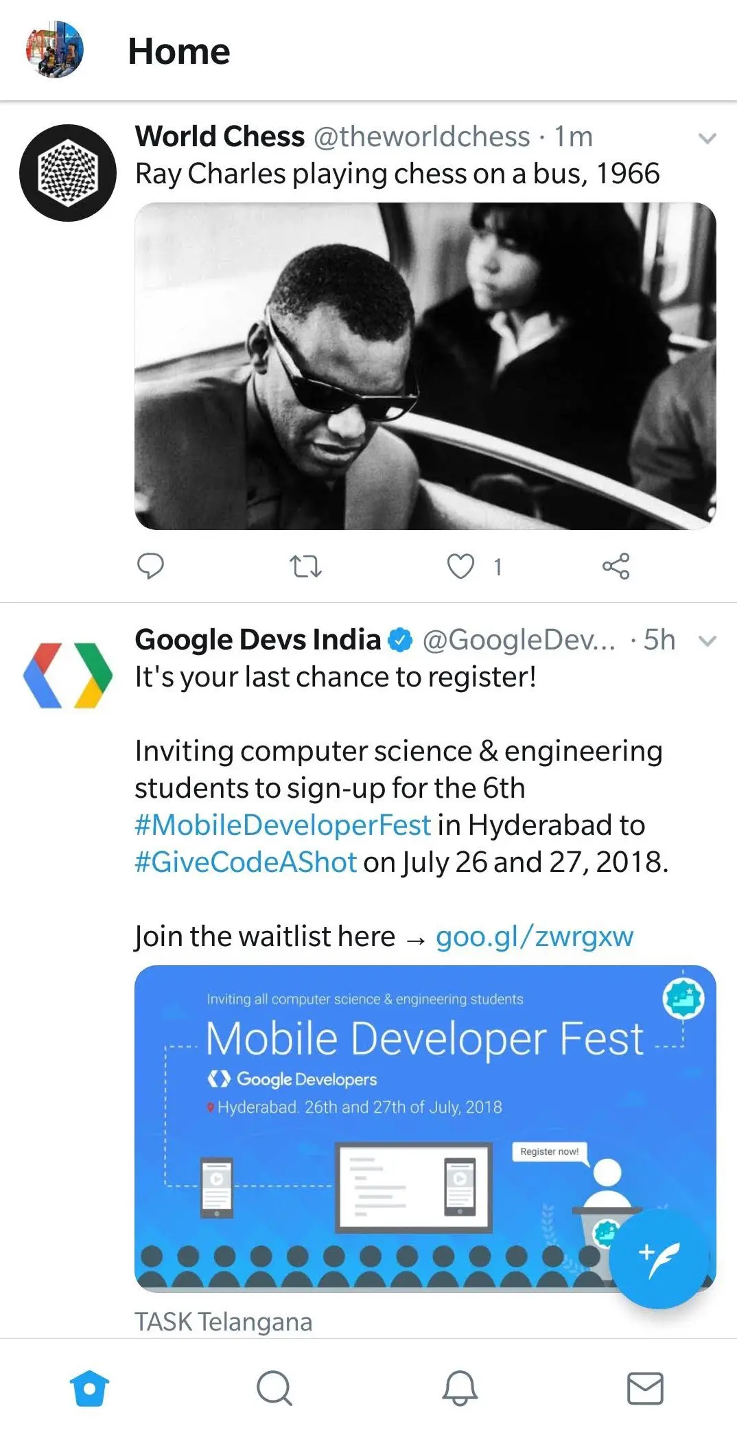 此挑战将尝试实现安卓版 Twitter 的主页。请注意,重点将放在 UI 上,而不是实际从后端服务器获取数据。