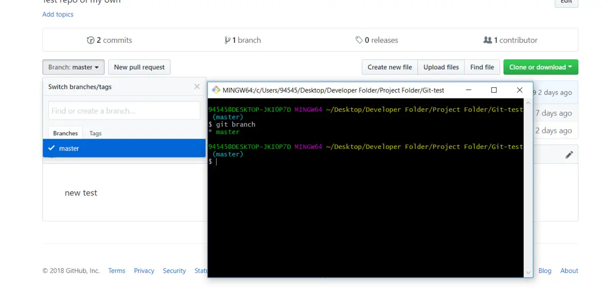 首先我们先看到本地仓库和远程仓库都只有 master 分支: