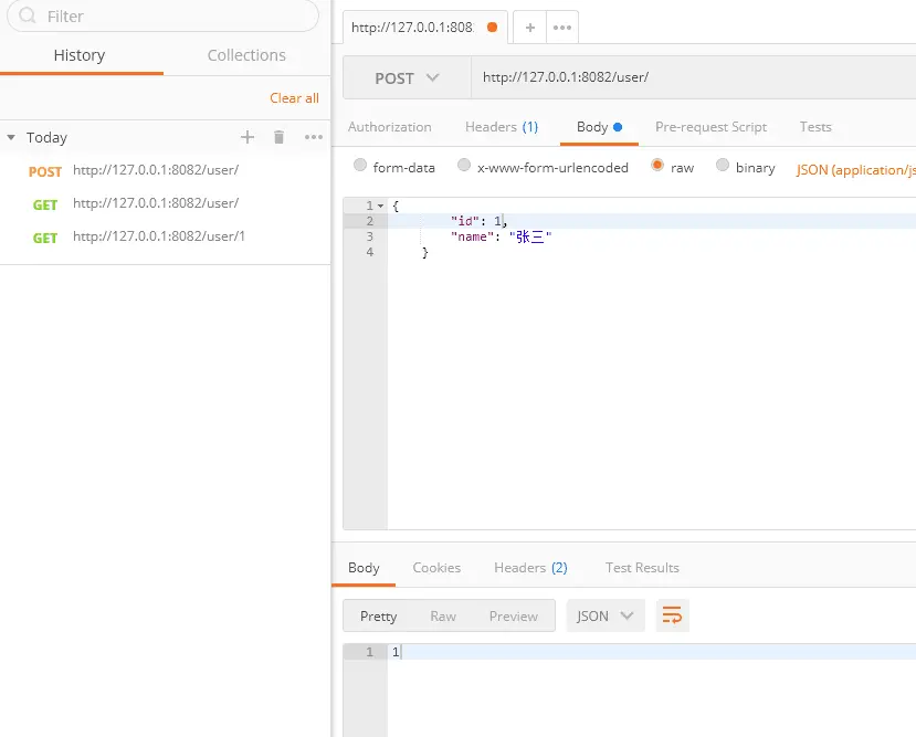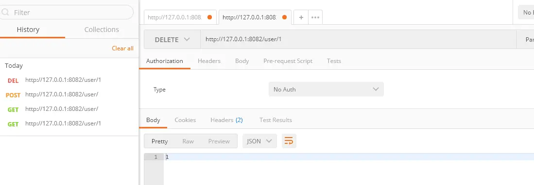 使用PostMan进行测试,这里截取发送POST请求与DELETE请求