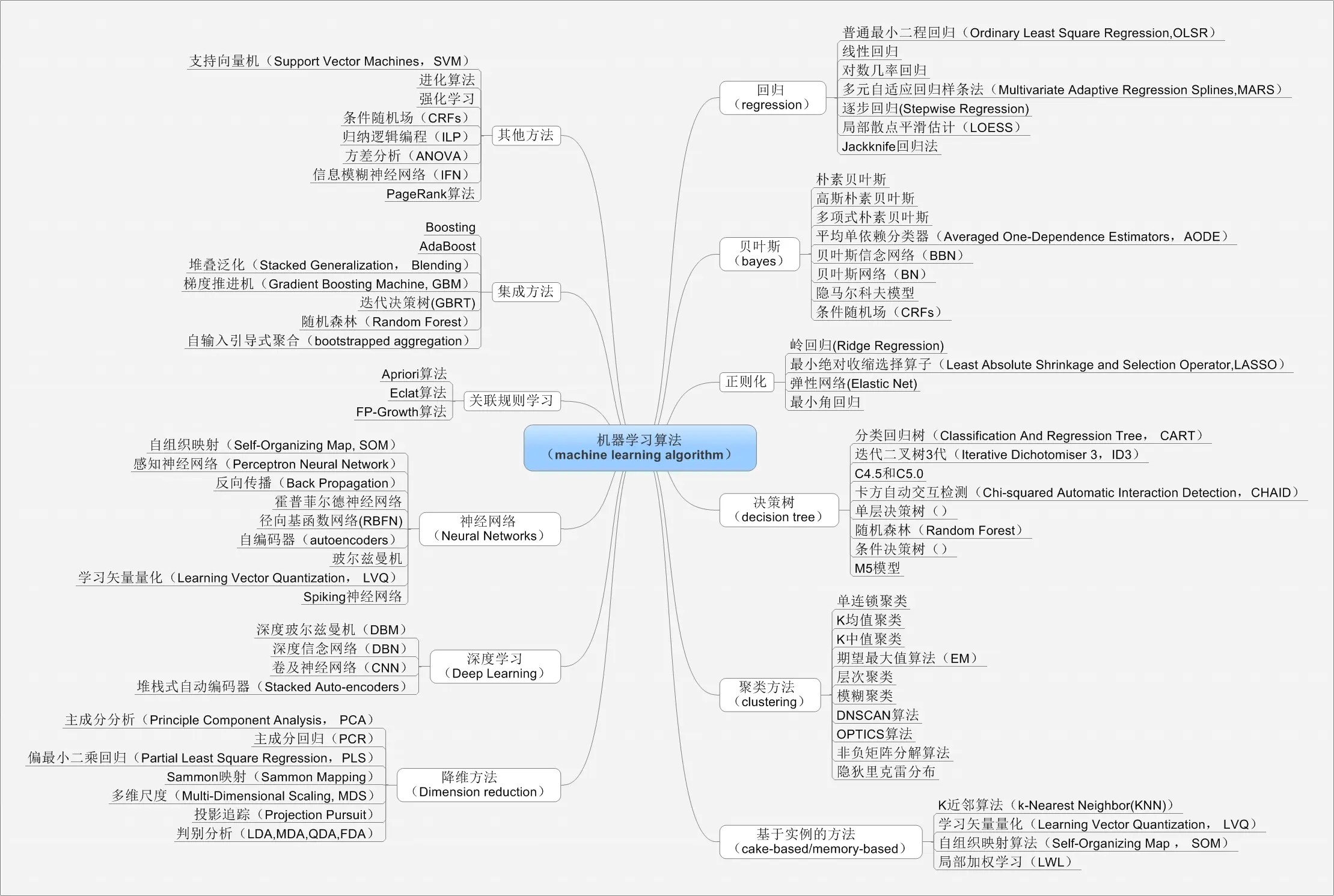 需要掌握一些经典的机器学习算法,毕竟机器学习算法要列起来实在太多了,网上找了的一张图,瞧瞧o(╥﹏╥)o
