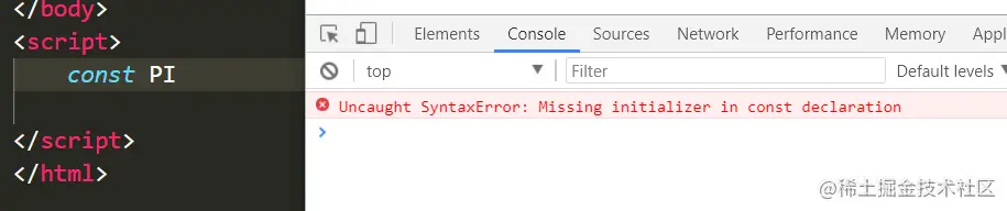 2.用const来声明常量,声明常量时必须赋值,常量不可修改