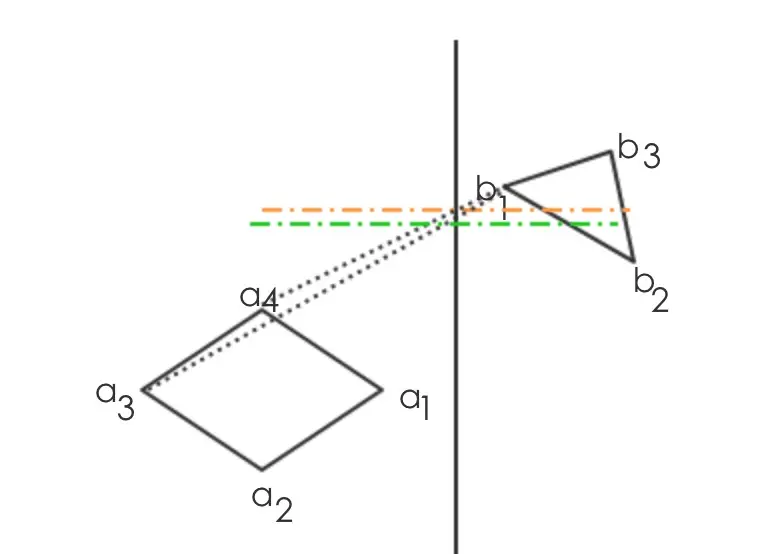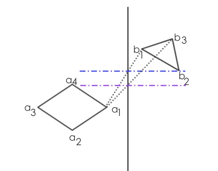 同样的可以按照粗暴的思路来解决,就是去看所有的两个CH的所有顶点连线,然后看是否所有的点都在它的一侧。