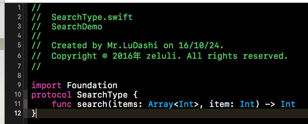 因为本篇博客我们涉及查找表的多种查找方式,而且查找表的数据结构都是线性结构。基于Swift面向对象语言的特征以及面向接口编程的原则,我们先给我们所有的查找方式定义一个协议。本篇博客中所有的查找方式都会遵循这个查找类型,这样便于外部统一调用,也方便我们测试和扩展。