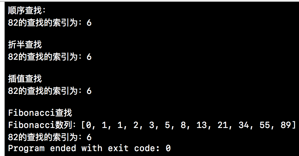 上方的测试用例我们使用的是一个,只要传入不同的查找类的对象,我们就可以使用相应的查找方法进行查找。下方就是我们本篇博客测试用例的输出结果。