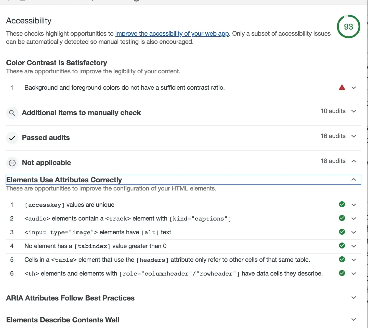 他的评价体系比起a11ym 不可不谓温和。但是根据它给出的信息,我们还是可以进行对应的优化。