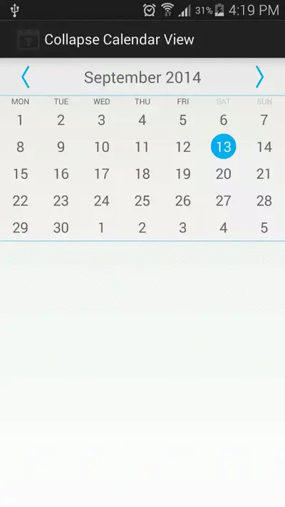 **android-collapse-calendar-view**可以在月视图与周视图之间切换的calendar控件