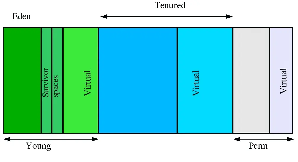 注2:图中的Virtaul则是各区域还未被分配的内存,即最大内存-当前分配的内存