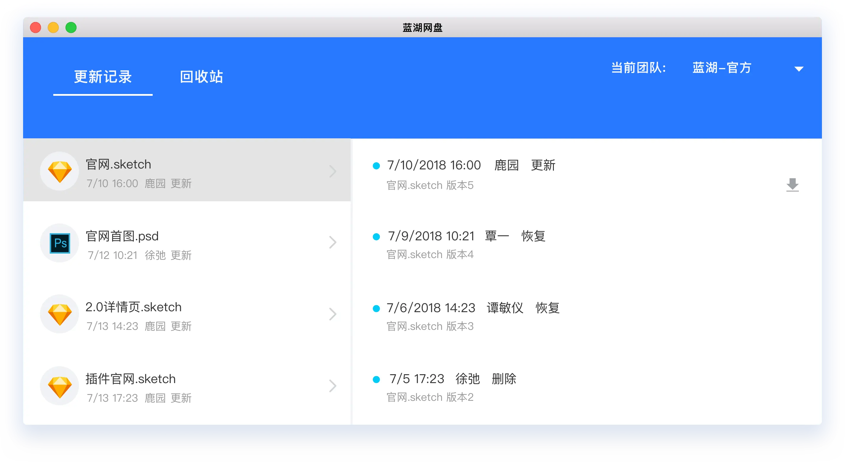实现 Sketch 文件、PSD 文件等设计文件共享,方便团队协作; 同时能避免文件丢失造成的损失。