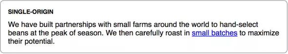 <div class="panel"> <h2>Single-origin</h2> <div class="panel-body"> We have built partnerships with small farms around the world to