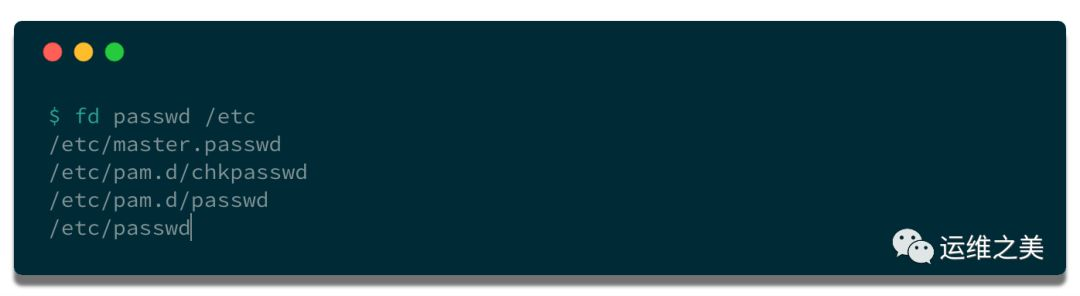 fd 默认会在当前目录和其下所有子目录中搜索,如果你想搜索指定的目录就需要在第二个参数中指定。例如:要在指定的 /etc 目录中搜索包含 passwd 关键字的文件或目录。