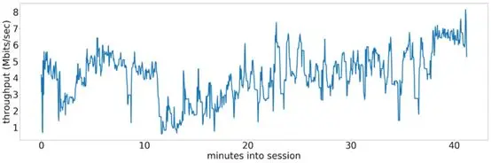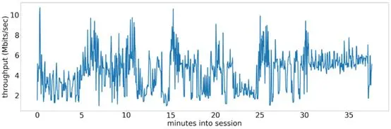 以下是在真实观看会话期间测量的网络吞吐量的一些示例。可以看到它们非常嘈杂并且在很大范围内波动。在最近15分钟的数据中,可以预测未来15分钟的吞吐量会是什么样的。我们如何整合有关网络和设备的长期历史信息?我们可以从服务器提供哪种数据,以让设备能够以最佳方式进行调整?即使我们无法准确预测网络丢失何时会发生(突发情况众多),我们是否至少可以特定分析吞吐量的分布我们希望看到给定的历史数据?