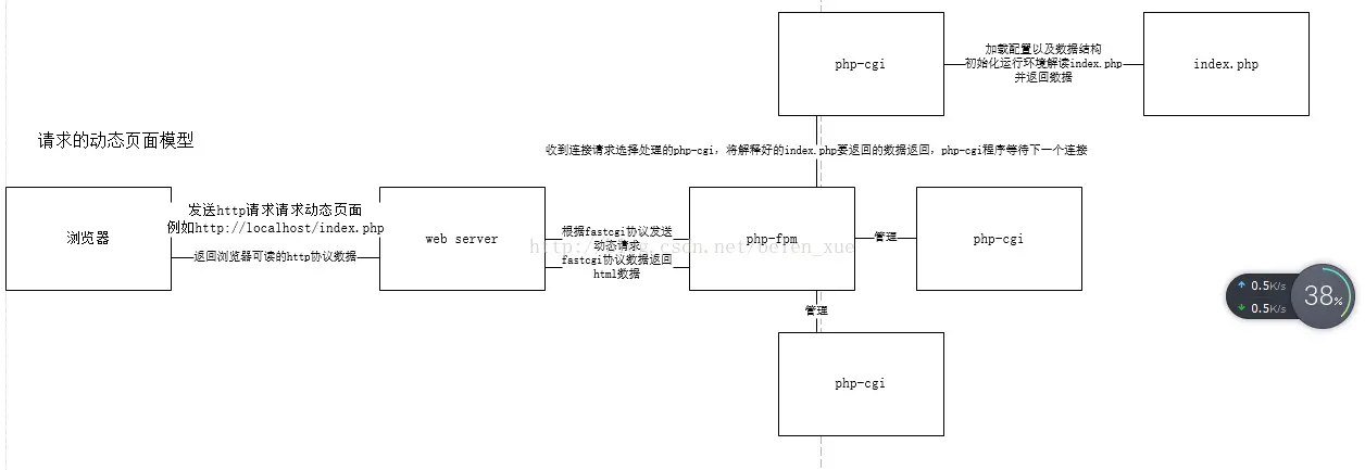 每次收到web server请求,master进程分配任务给子进程worker(php-cgi)处理,请求处理完毕这个php-cgi并不会关闭,而是继续等待下一个连接,这也是fast-cgi加速的原理。因为常驻内存,php-cgi基本消耗7-25M内存,如果进程过多导致内存消耗过大,引起502错误。