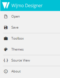 设计器的主菜单默认为全部折叠,并显示为垂直条形图标。单击页面左上角的WijmoJS徽标以展开菜单。