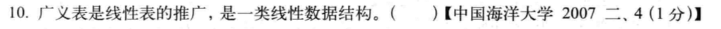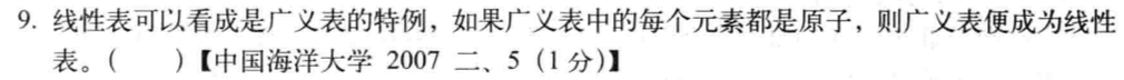 线性表可以看成是广义表的特例,如果广义表中每一个元素都是原子,则广义表便成为线性表