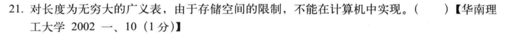 对于长度为无穷大的广义表,由于存储空间限制,无法在计算机中实现
