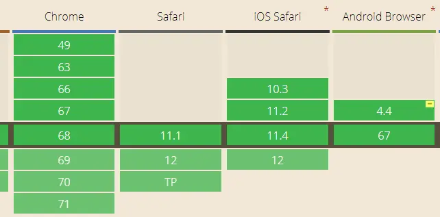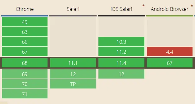 可以看到,CSS3的animation和canvas支持性比较好,只有WebGL在Android 4.4 Browser 完全不支持,后续我们会提到PixiJs库,可以采用WebGL渲染,也可以优雅降级采用canvas渲染