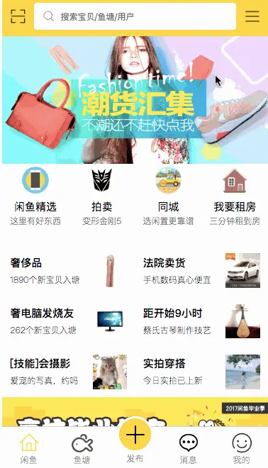 每次写文章时,总会觉得比写代码难多了,可能这就是我表述方面的不足吧,然而写文章也是可以复盘一下自己的开发过程,对自己还是受益良多的。在这里简单叙述一下我仿某鱼部分布局以及功能实现的过程,仅做学习用途。