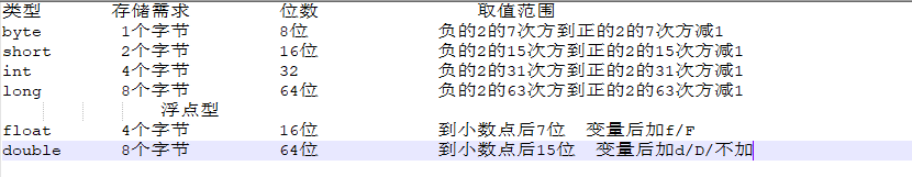 Java中整型和浮点型