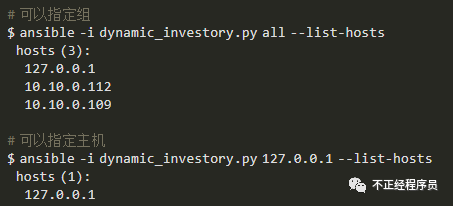--host:返回指定主机的变量列表,或者返回一个空的字典