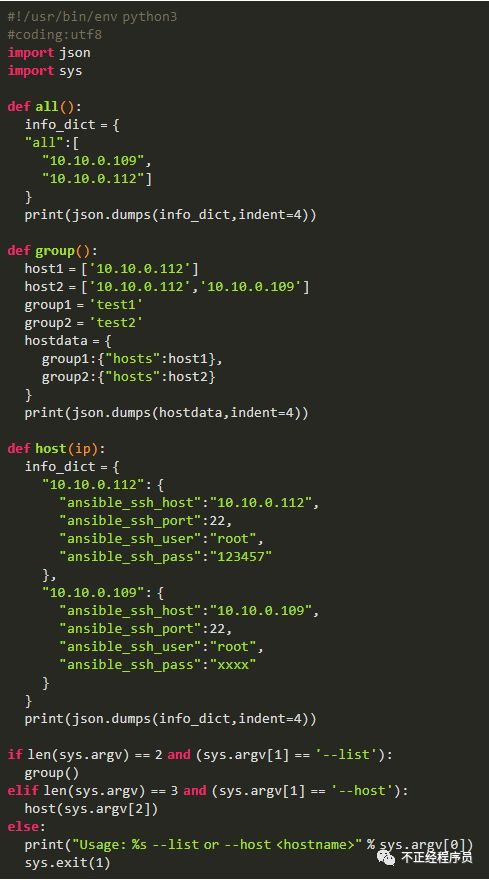 比如为了结合资产管理系统(CMDB),所以要使用到动态获取 inventory 的方法,这样可以省去配置 ansible 服务端的 hosts,所有的客户端 IP、帐号、密码、端口都可以从 CMDB 中获取到。