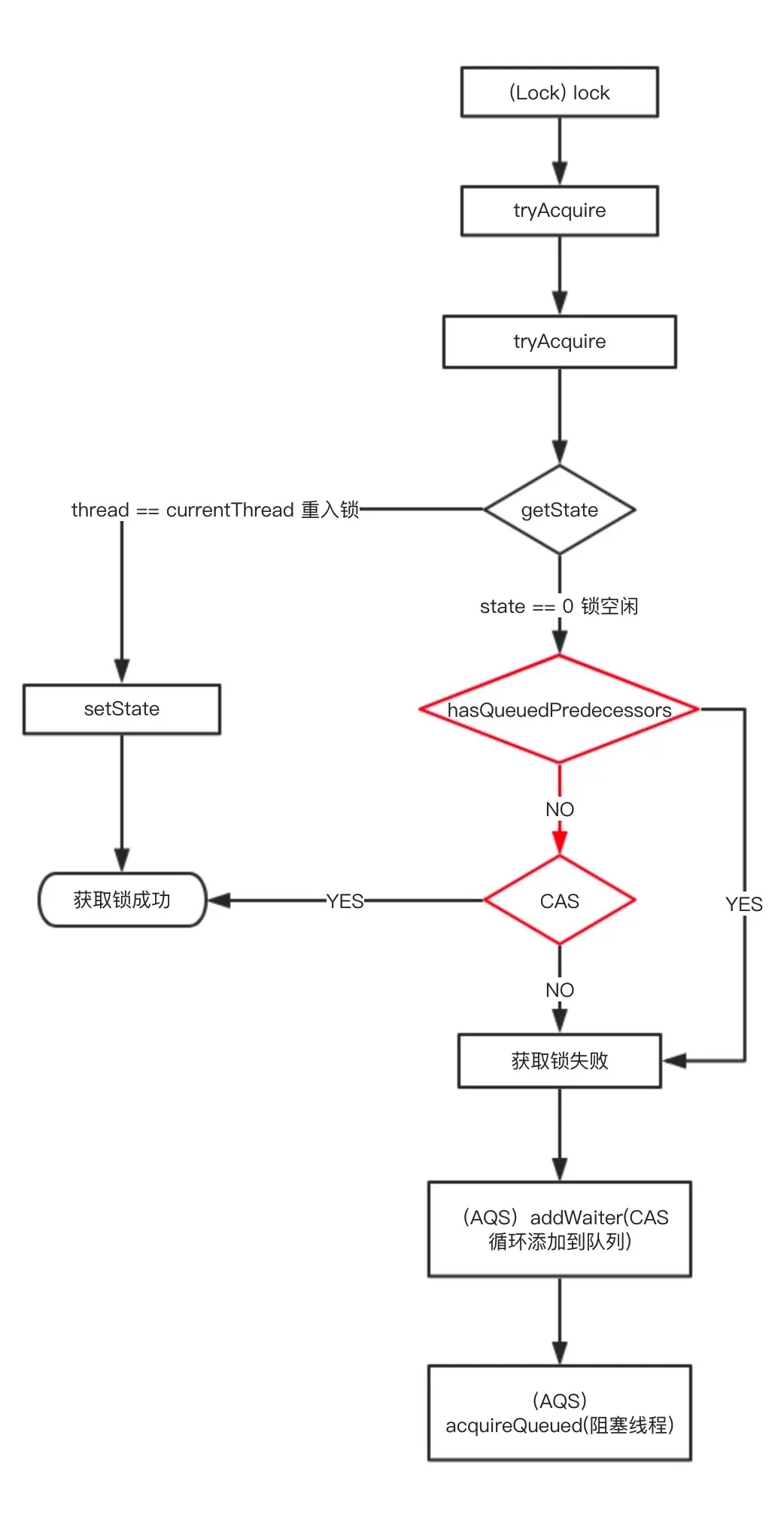 if (!hasQueuedPredecessors() && //判断队列中是否已经存在等待线程,如果存在则获取锁失败,需要排队