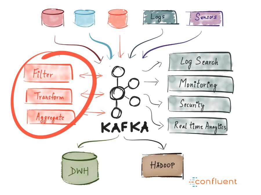 有了一个健壮、可扩展的消息系统,如果能方便的对消息数据流进行处理就更好了。Kafka 的 Stream API正是提供了这个功能,它是一个 Java 客户端库,提供了比 producer 和 consumer 更高级别的抽象。