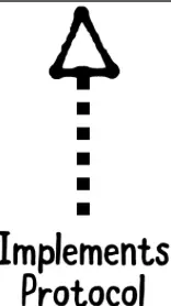 使用一个空心箭头和虚线来表示一个类遵守了一个协议: